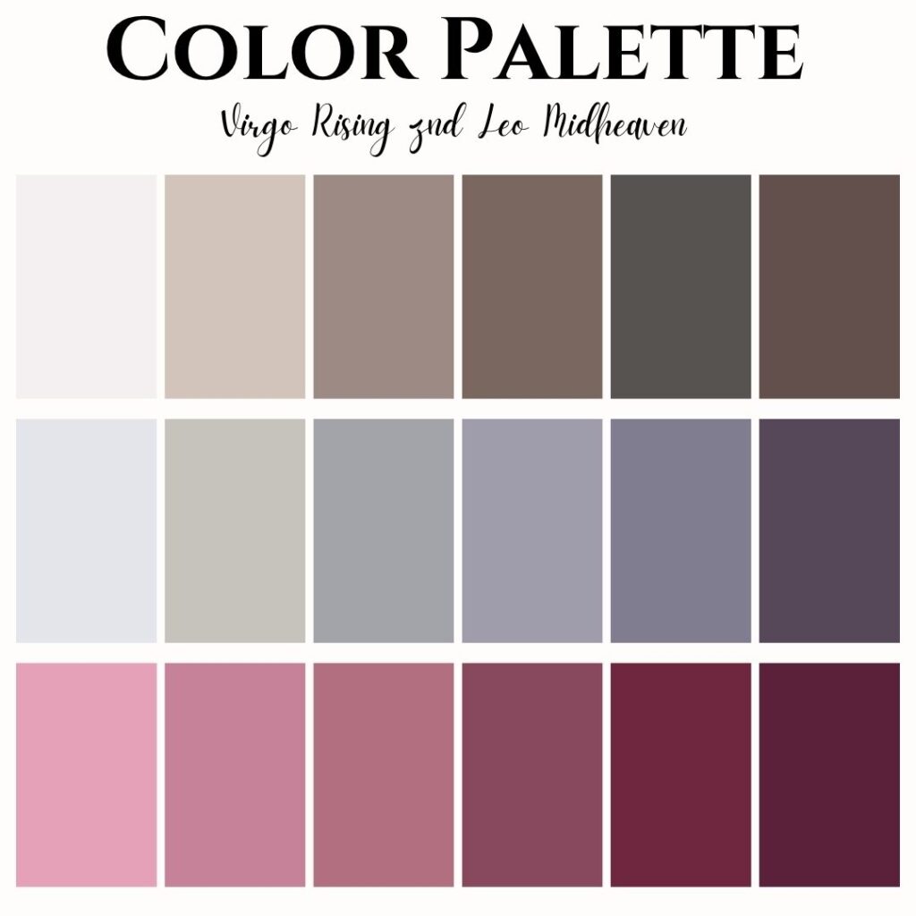As a Virgo rising, your style leans toward minimalism, functionality, and quiet detail. You naturally present as composed, intentional, and polished. Your color palette supports this with muted, cool, and dusty tones like mauve, slate blue, heather gray, soft sage, rosewood, and taupe.