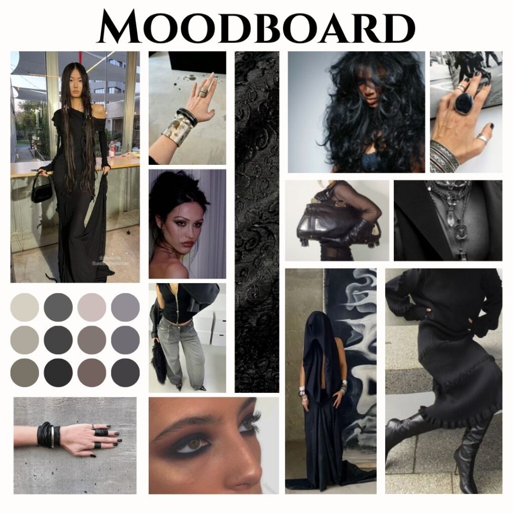 Boots with hardware, embroidered shawls, or scarves with astrological constellations. Jewelry with obsidian, garnet, amethyst, or moonstone
