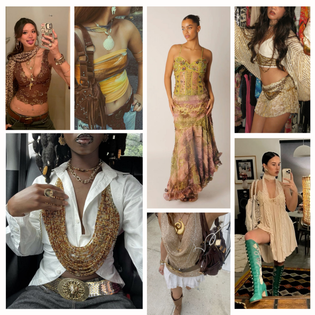 Maxi dresses with celestial prints or subtle shimmer. Wrap tops with flowing sleeves. Capes or shawls in luxurious, gauzy fabrics.