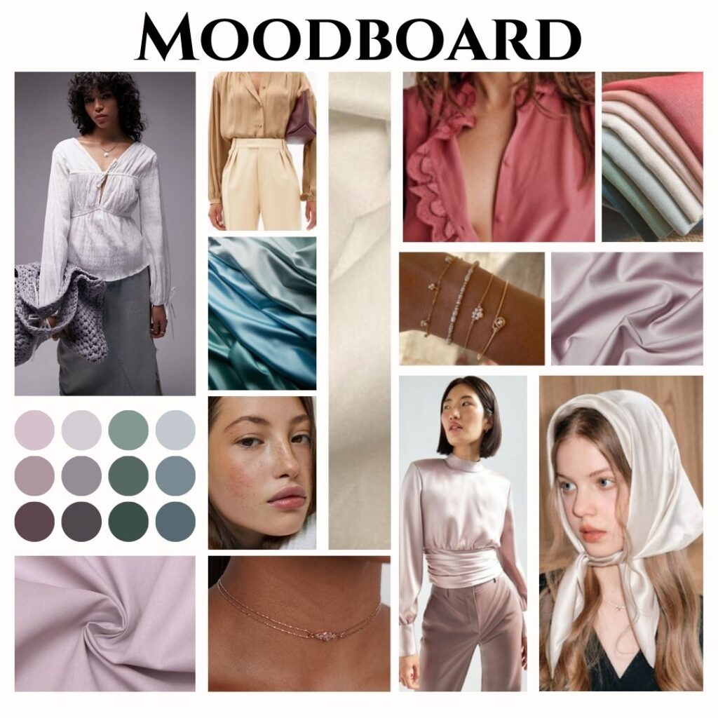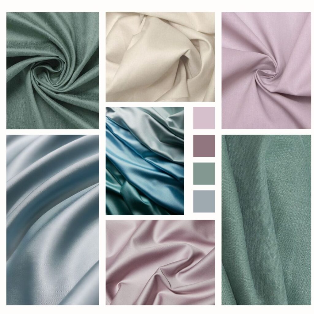 Focus on soft pastel tones and cool neutrals, such as lavender, soft mint, dusty pink, and light gray.