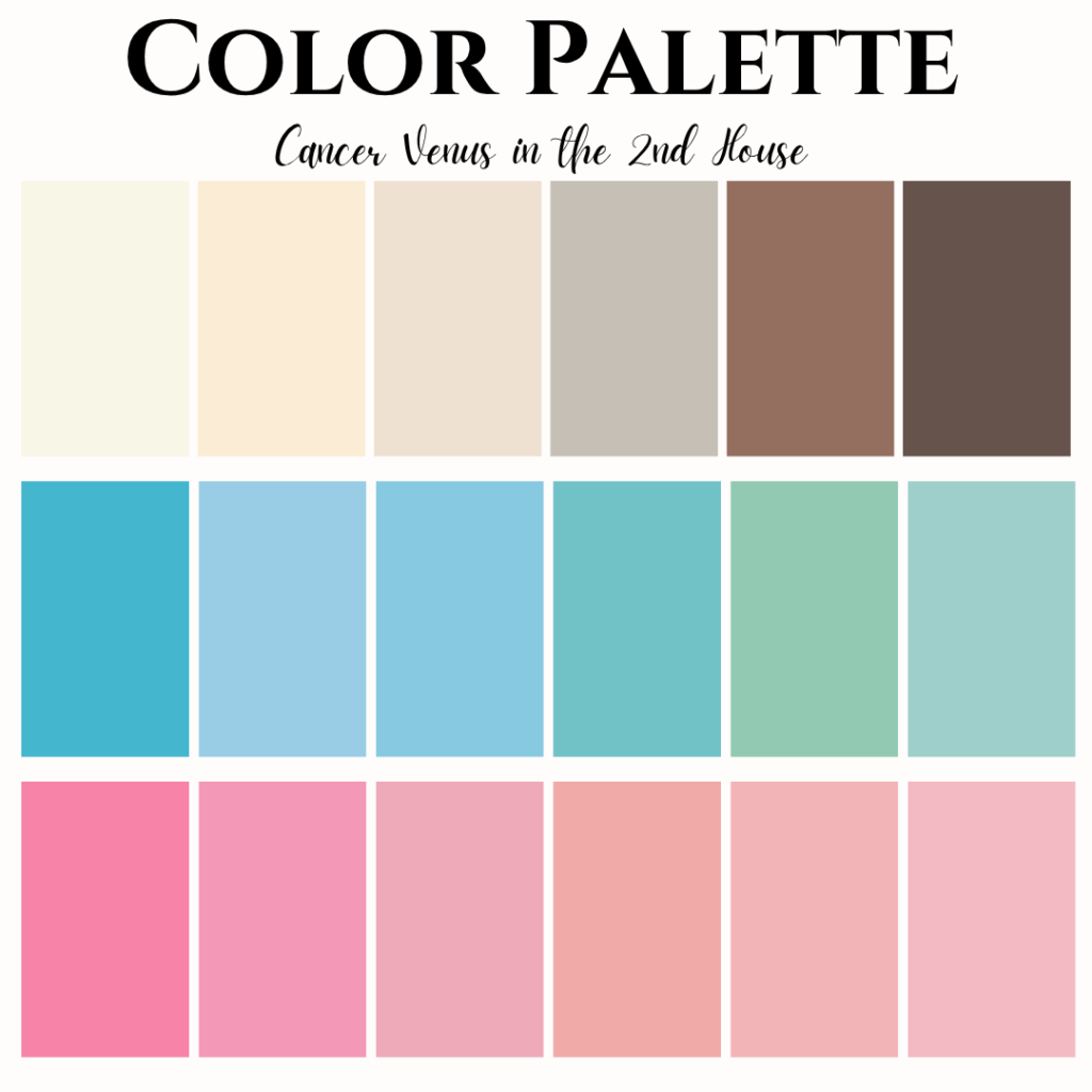 These colors complement your Gemini rising’s bright and breezy nature. While also soothing Cancer Venus’s emotional sensitivity.