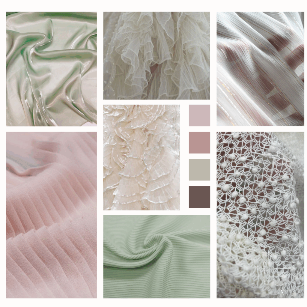 Sheer overlays and light knits add texture without heaviness. Fabric choices should invite closeness.