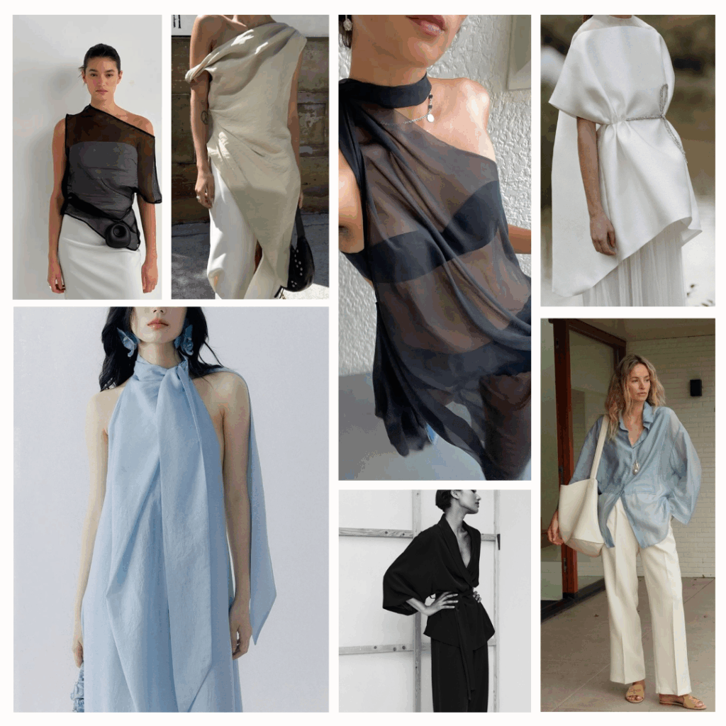 Opt for cotton poplin, high-quality jersey, modal, and bamboo fabrics for basics. Add interest with smooth satins, technical blends, or structured knits.