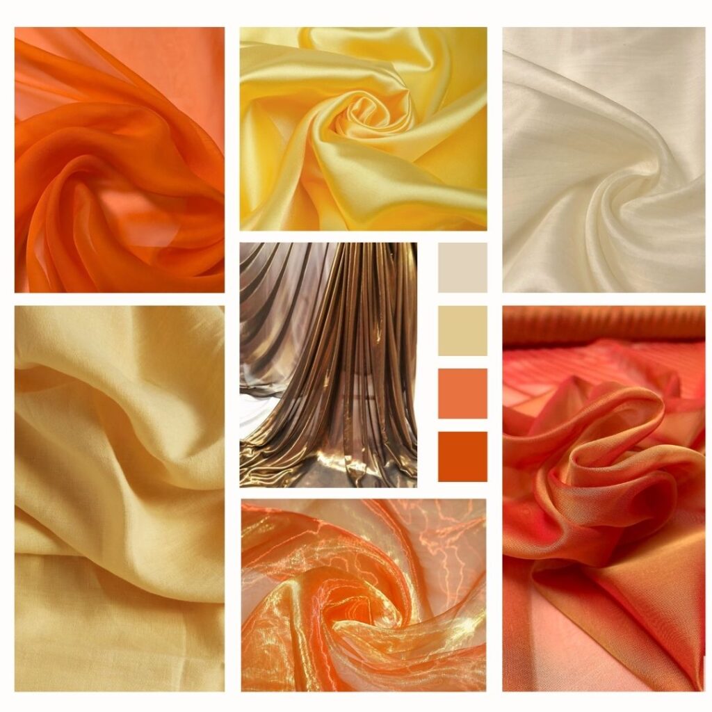 Silk, chiffon, and lightweight cotton blends bring a sense of airiness and vibrancy.