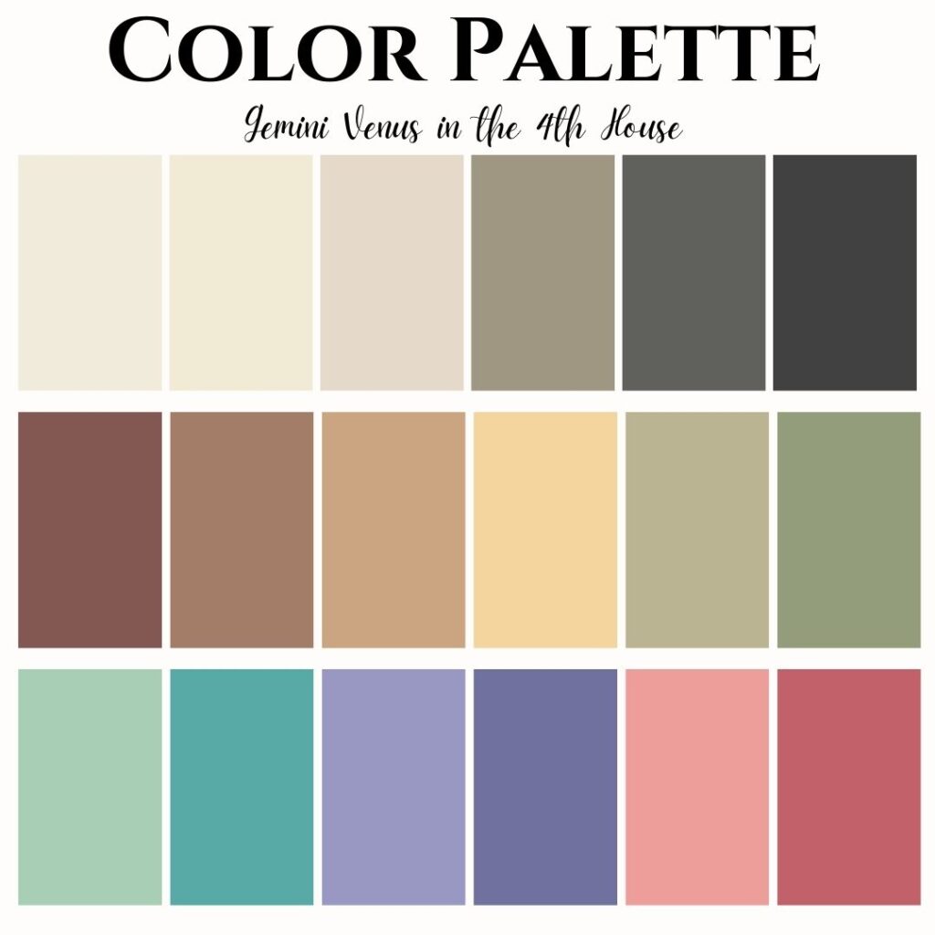 As a Pisces Rising, your color palette consists of muted, warm hues that create a harmonious and inviting aesthetic. Think terracotta, soft olive, golden beige, dusty rose, and warm teal.