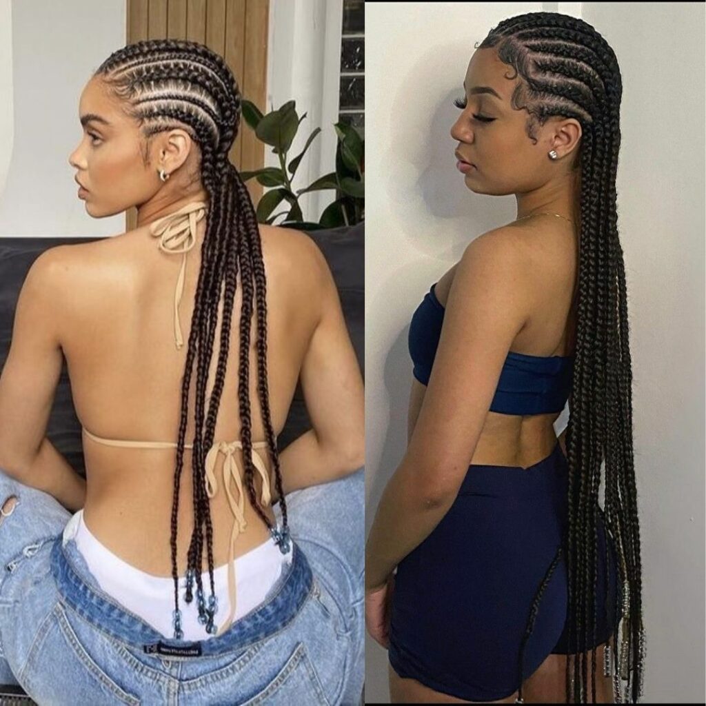 While the cornrows add symmetry and structure to their rounded or oval face shape.